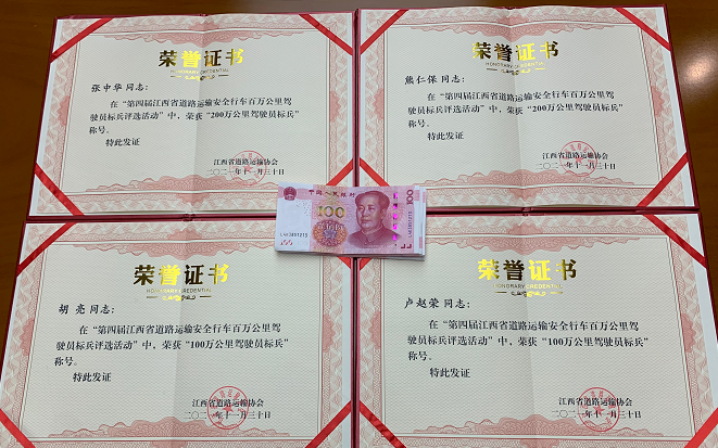 近日,都市城際公交駕駛員張中華、熊仁保、胡亮、盧趙榮四位同志在“第四屆江西省道路運(yùn)輸安全行車百萬公里駕